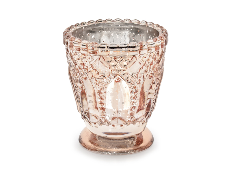Szklany świecznik w kolorze różowego złota, szerokość ok. 7 cm, wysokość ok. 8 cm. (1 op. / 4 szt.)