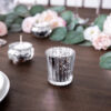 Szklany świecznik w kolorze srebrnym lustrzanym, szerokość ok. 5,5 cm, wysokość ok. 6 cm. (1 op. / 4 szt.)