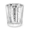 Szklany świecznik w kolorze srebrnym lustrzanym, szerokość ok. 5,5 cm, wysokość ok. 6 cm. (1 op. / 4 szt.)