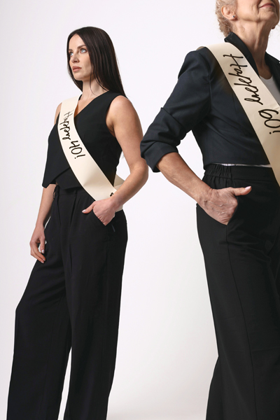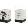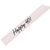 Szarfa papierowa Happy 40 w kolorze kremowym z czarnym nadrukiem, szerokość ok. 9,5 cm, długość ok. 76 cm. W zestawie czarna aksamitna wstążka do związania szarfy.