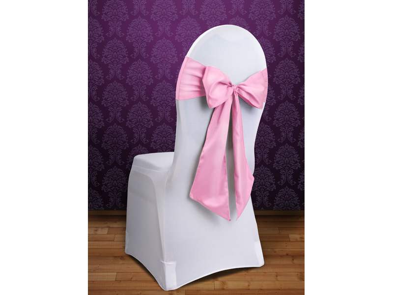 Szarfy na krzesło z grubej matowej satyny w kolorze jasnoróżowym, długość 2,75 metra, szerokość 15 centymetrów. (1 op. / 10 szt.)