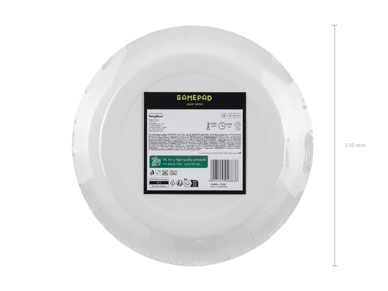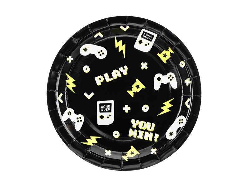 Talerzyki Gamepady w kolorze czarnym z kolorowym nadrukiem, średnica ok. 23 cm. (1 op. / 6 szt.)