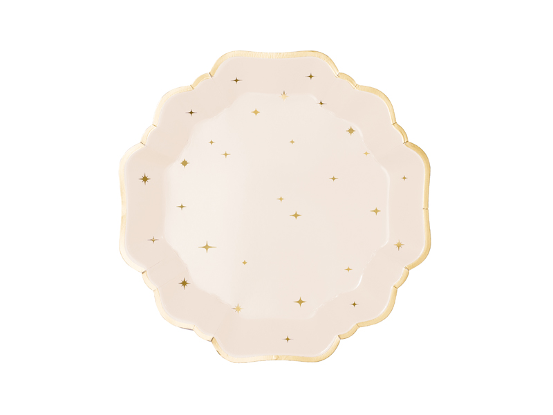 Talerzyki papierowe Gwiazdki w kolorze beżowym w złote gwiazdki, średnica ok. 21 cm (1 op. / 6 szt.)