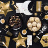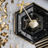 Talerzyki papierowe Let’s Celebrate w kolorze czarnym ze złotymi brzegami, średnica ok. 23 cm. (1 op. / 6 szt.)