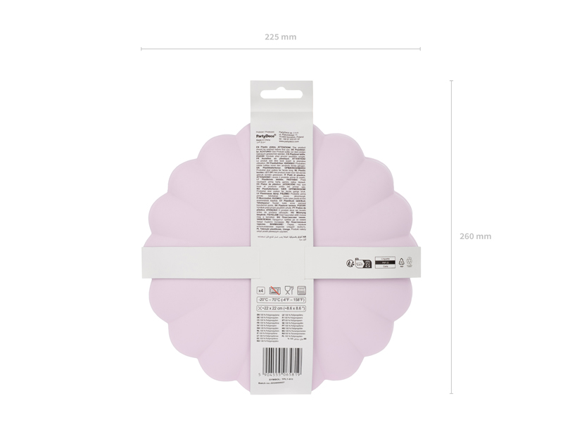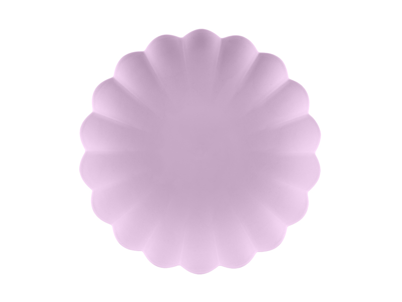 Talerzyki plastikowe Falbanka w kolorze fioletowym, wymiary ok. 22 x 22 cm. Produkt wielokrotnego użytku. (1 op. / 4 szt.)