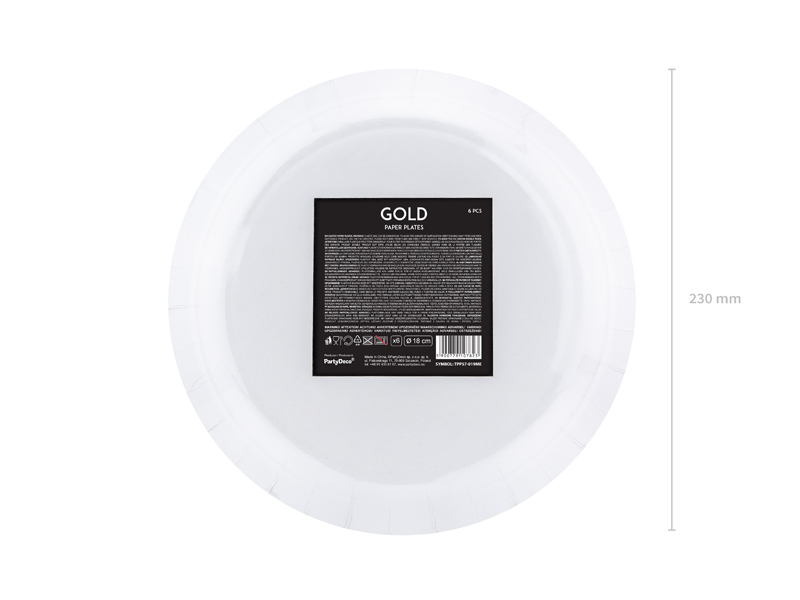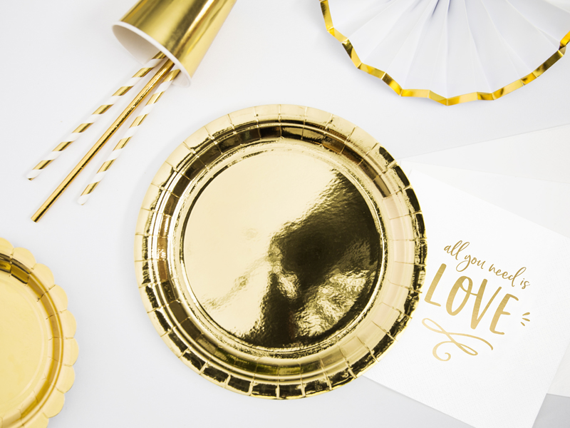 Talerzyki papierowe okrągłe w kolorze złotym metalizowanym, średnica ok. 23 cm. Stary symbol: TPP36-019ME. (1 op. / 6 szt.)