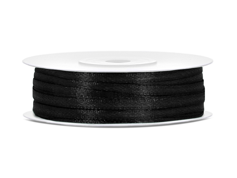 Tasiemka satynowa w kolorze czarnym, szerokość 3 milimetry, długość 50 metrów.