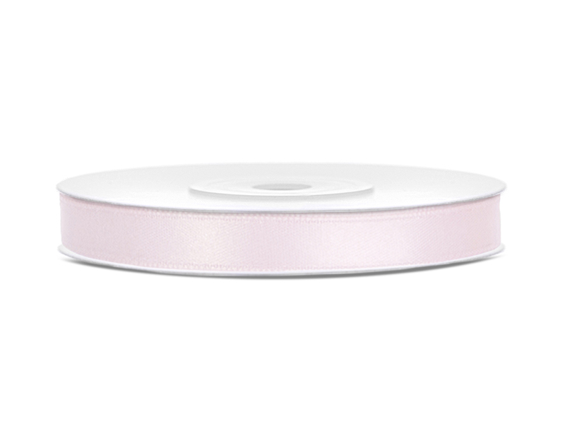 Tasiemka satynowa w kolorze jasnego pudrowego różu, szerokość 6 milimetrów, długość 25 metrów.