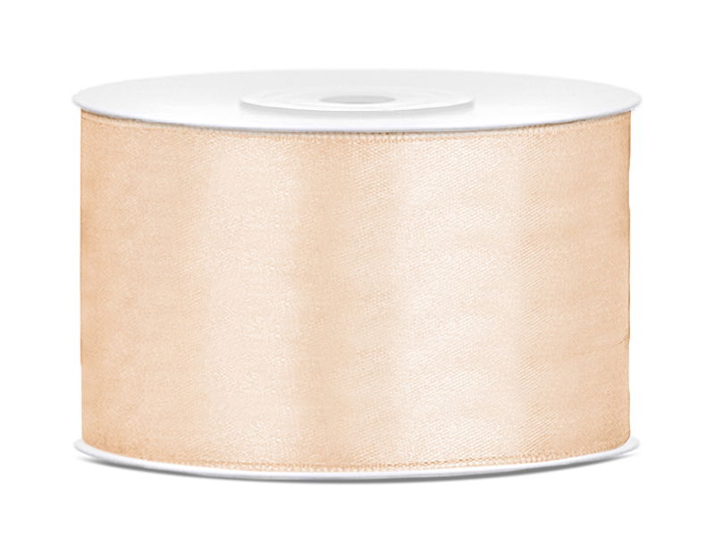 Tasiemka satynowa w kolorze kremowym, szerokość 38 milimetrów, długość 25 metrów. (1 szt. / 25 mb.)