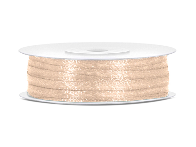 Tasiemka satynowa w kolorze kremowym, szerokość 3 milimetry, długość 50 metrów.