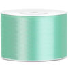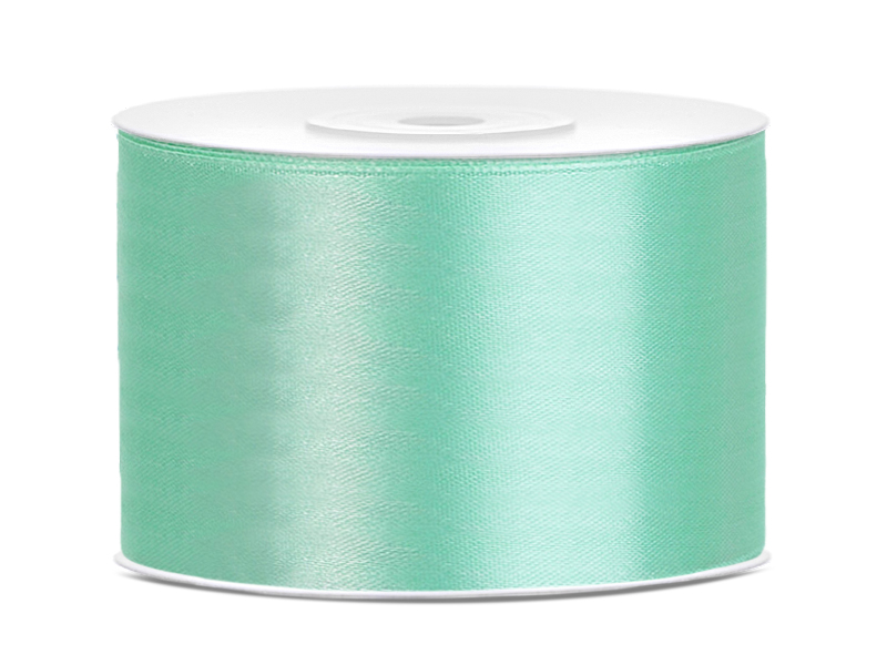 Tasiemka satynowa w kolorze miętowym, szerokość 50 milimetrów, długość 25 metrów.