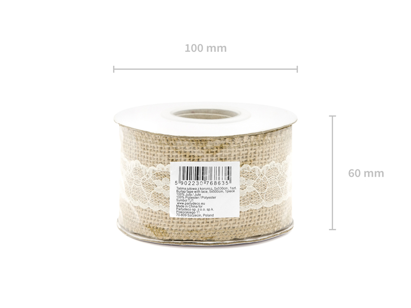 Taśma jutowa z koronką, 5x500cm