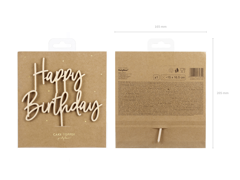 Topper drewniany Happy Birthday, 16.5cm