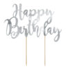Topper na tort Happy Birthday, srebrny, 22,5cm