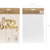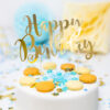 Topper na tort Happy Birthday, wykonany z papieru lustrzanego w kolorze złotym, wysokość ok. 22,5 cm.
