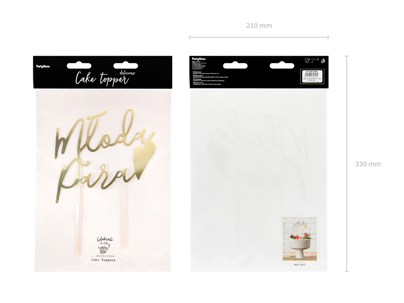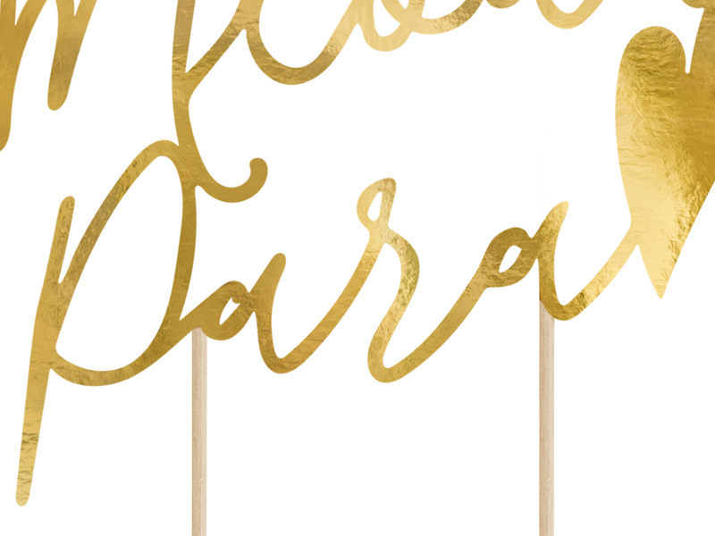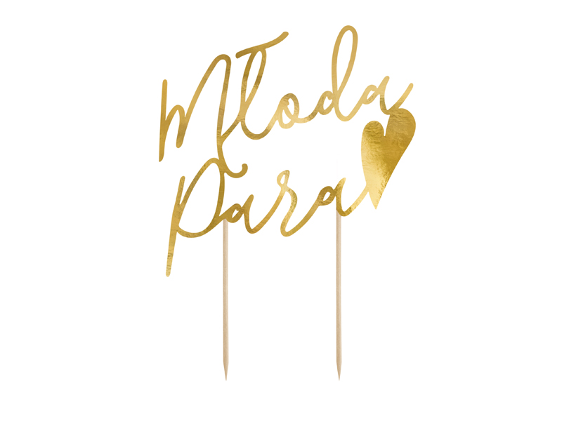 Topper na tort Młoda Para, złoty, 22,5cm