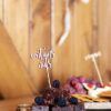 Drewniane toppery na słodki stół, zestaw zawiera 5 topperów z napiami: Vege, Vegan, Dairy free, Contains nuts i Gluten free, wysokość ok. 14.5-16 cm.