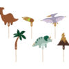Toppery na tort Dinozaury, mix wzorów i kolorów, zestaw zawiera 6 topperów na pikach, wysokość od ok. 8 cm do ok. 12 cm. (1 op. / 6 szt.)