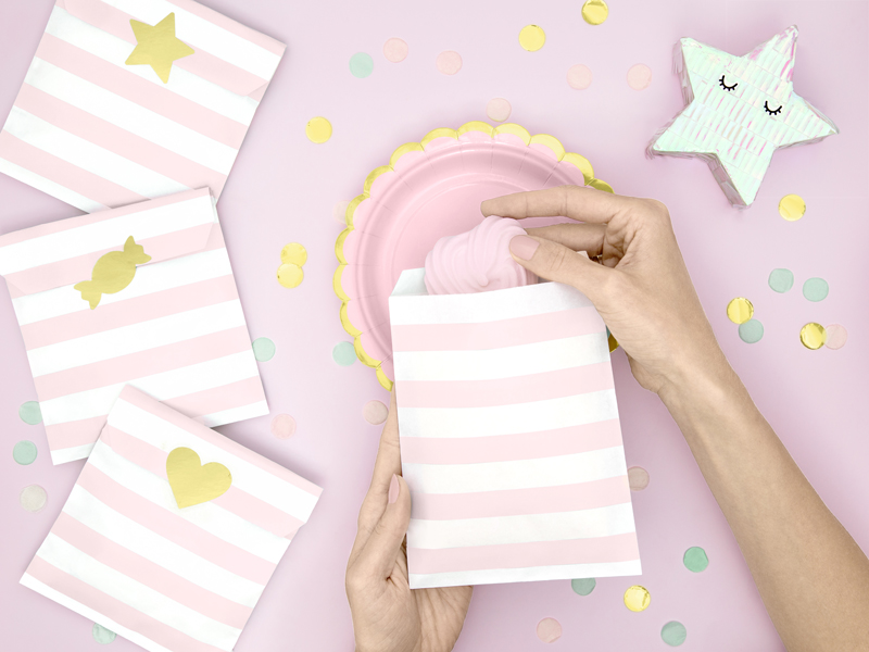 Torebki na słodycze Yummy, jasny różowy, 13x14cm (1 op. / 6 szt.)