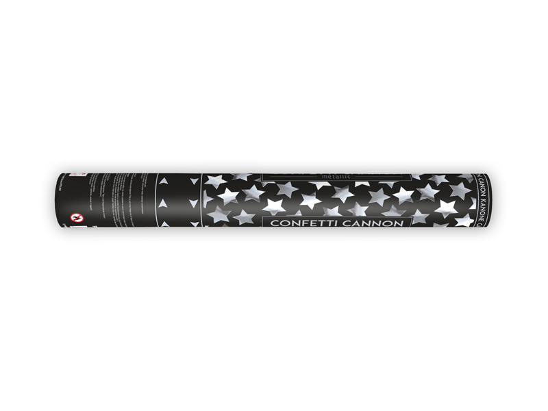 Tuba strzelająca metalicznymi gwiazdkami w kolorze srebrnym, długość 40 centymetrów.