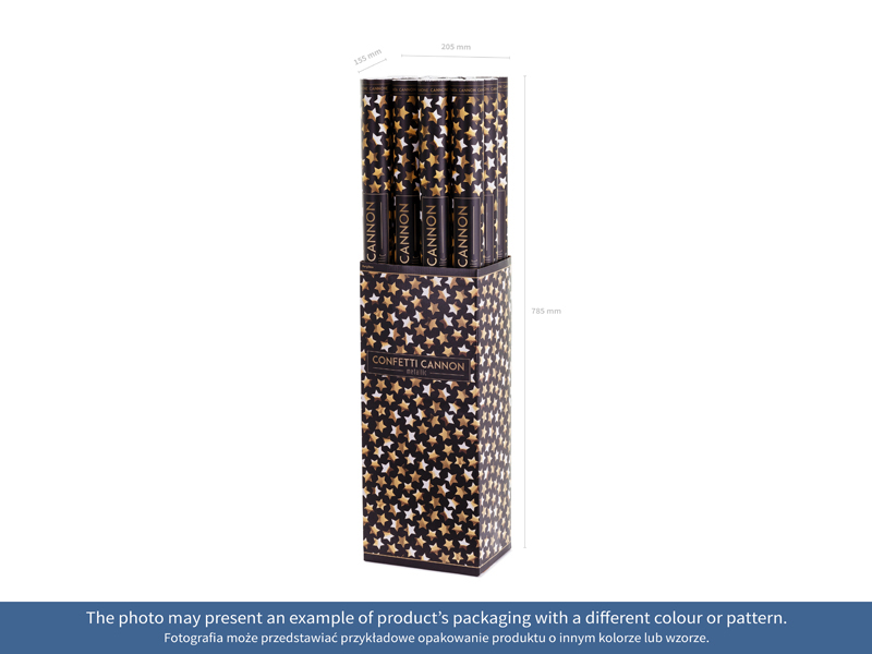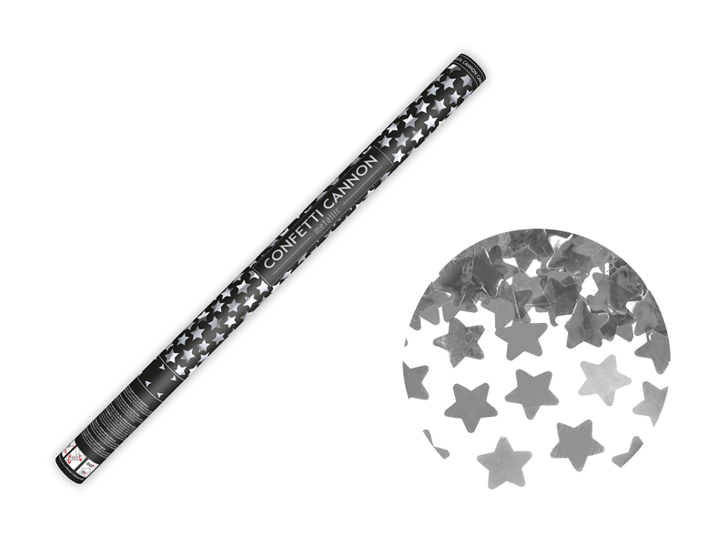 Tuba strzelająca metalicznymi gwiazdkami w kolorze srebrnym, długość 80 centymetrów.