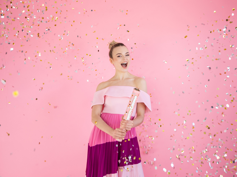 Tuba strzelająca metalicznymi dwustronnymi kółkami w kolorze srebrnym z jednej strony i złotym z drugiej strony, długość 60 centymetrów.