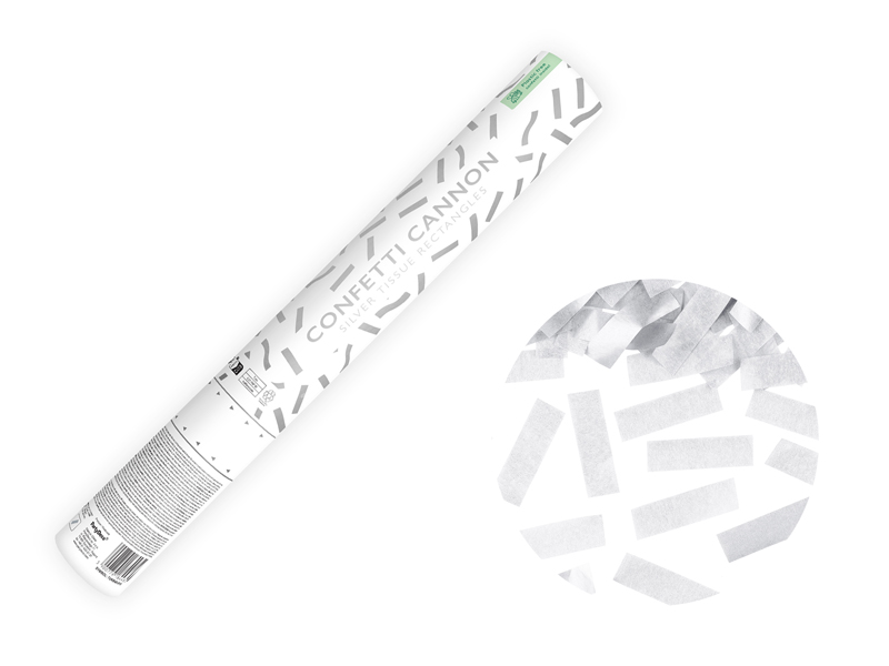 Tuba z konfetti, srebrny, 40 cm