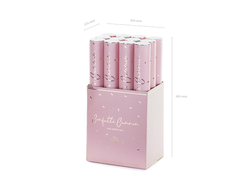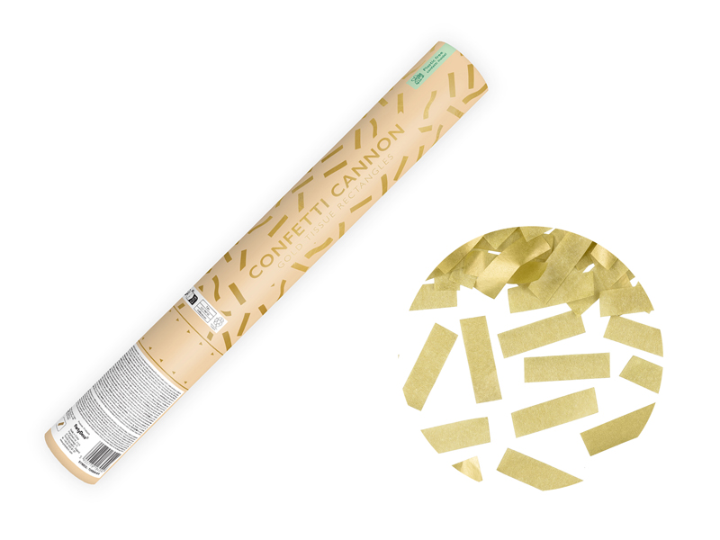 Tuba strzelająca bibułowym konfetti w kolorze złotym, długość ok. 40 cm.