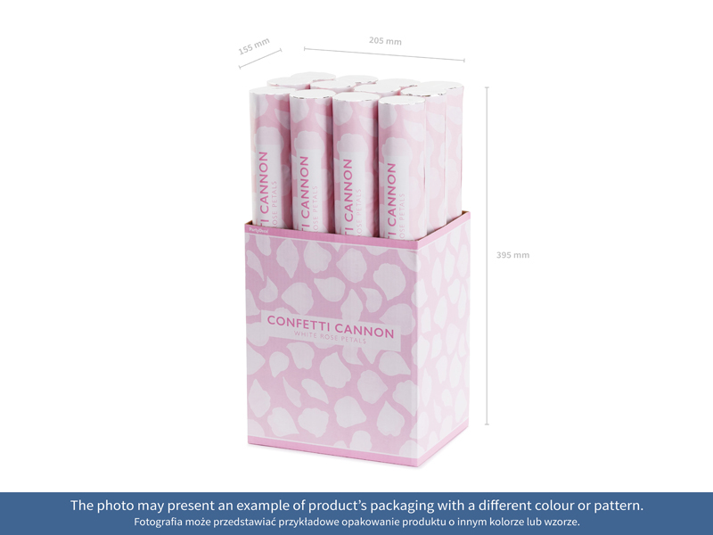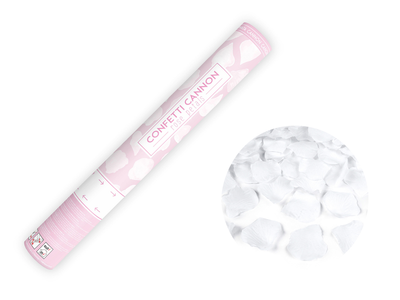 Tuba strzelająca sztucznymi płatkami róż w kolorze białym, długość 40 centymetrów.