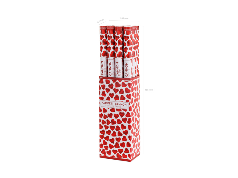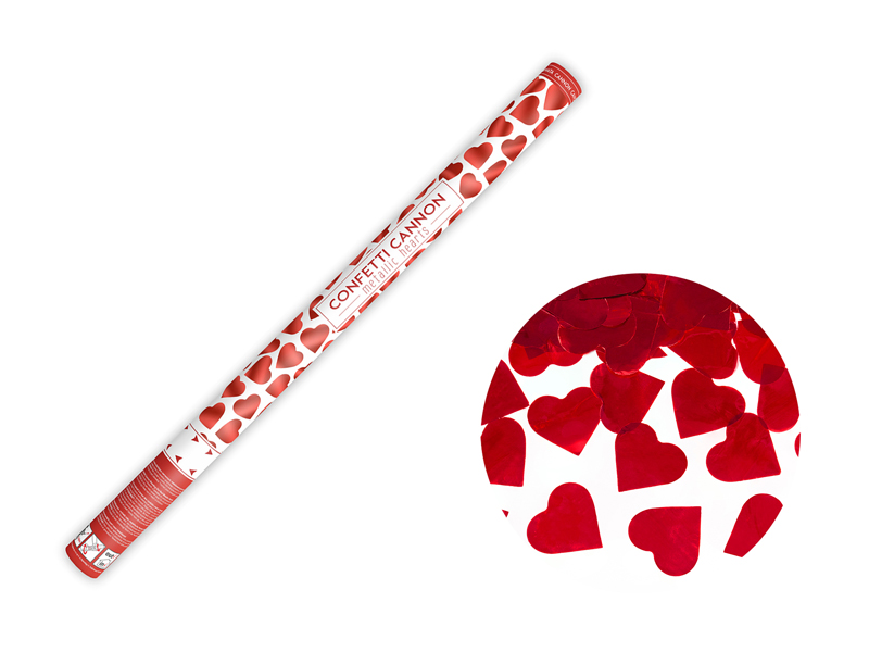Tuba strzelająca metalizowanymi sercami w kolorze czerwonym, długość 80 centymetrów.