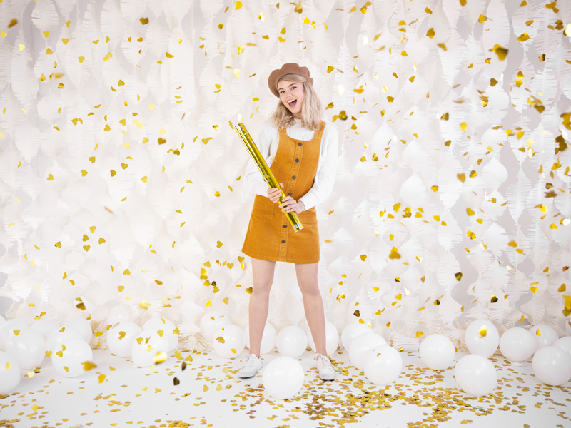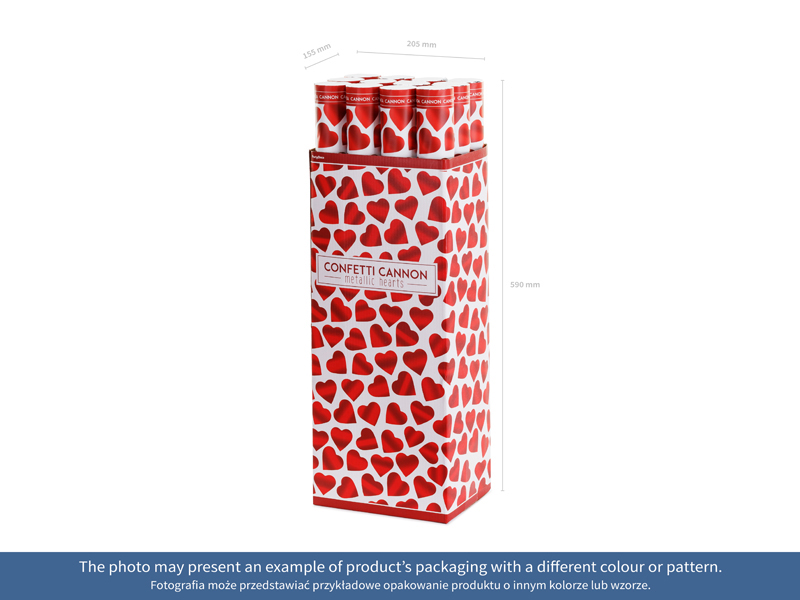 Tuba strzelająca metalizowanymi sercami w kolorze złotym, długość ok. 60 cm.