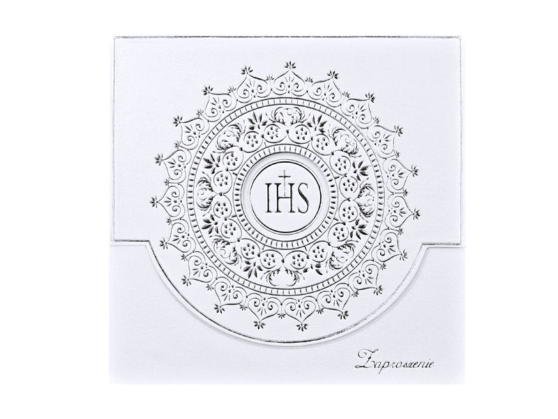Zaproszenia komunijne z ornamentem, srebrny (1 op. / 10 szt.)