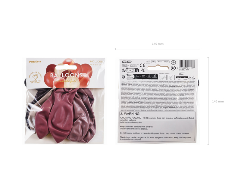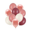 Zestaw balonów lateksowych, mix kolorów (pastelowy alabastrowy – 2 szt., metalizowane różowe złoto – 3 szt., pastelowy śliwkowy – 2 szt. i pastelowy różowy – 3 szt.), zestaw zawiera balony w rozmiarach 27 cm i 30 cm. (1 op. / 10 szt.)